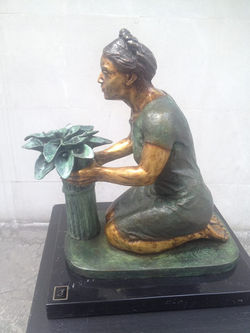 Es una colección donde nos muestra mujeres y niños; figuras que guardan el amor, la calidez que surge del calor del bronce al ser fundido, piel de bronce, tacto vivo, música en silencio y mirada del alma… materia y espíritu trascienden el tiempo. La Maestra Farías hace un juego sutil de la luz y la sombra, expresividad en el rostro, equilibrio de tensiones plásticas en armonía, proceso creador donde la metáfora da forma escultórica a la fantasía y a los sueños, quehacer maravilloso que transforma una pieza en obra de arte.